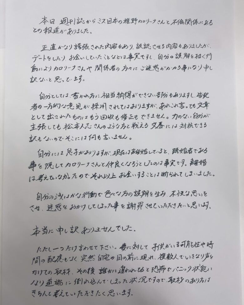 『第56回ミス日本コンテスト2024』(以下、ミス日本)でグランプリに輝いた椎野カロリーナさんの報道をめぐり、「ミス日本」が2月1日、公式ホームページでコメントを発表。「妻子ある男性が『独身である』旨を述べて女性に近づいたためにおきた」などと説明した。