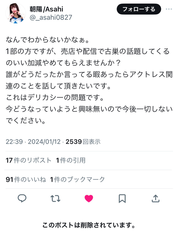 — 朝陽/Asahi (@_asahi0827) January 5, 2024
