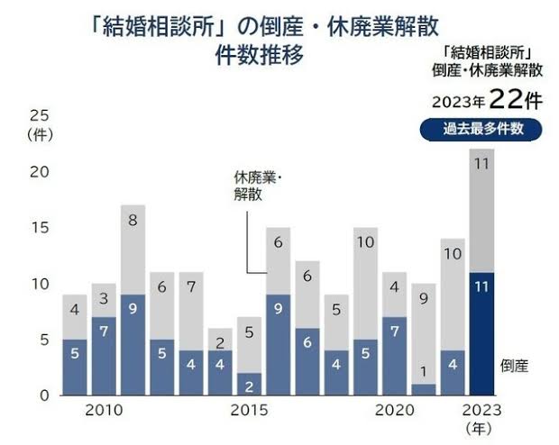 「マッチングアプリ」台頭で苦戦 結婚相談所の倒産が増加、過去最多に