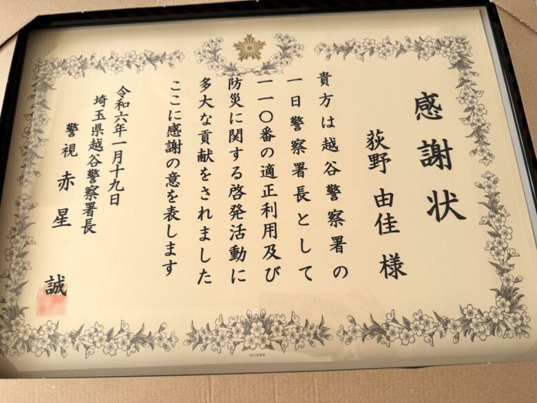 「大変光栄に思います!」荻野由佳、越谷警察署の一日警察署長に就任!