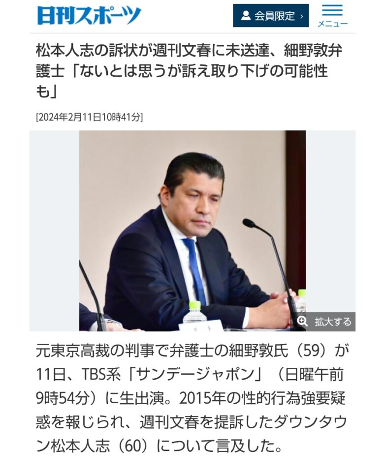 仮に松本が訴えなかった場合立花が文春に松本を訴えるようはたらきかけるらしいな