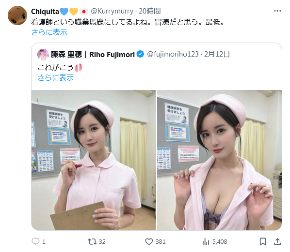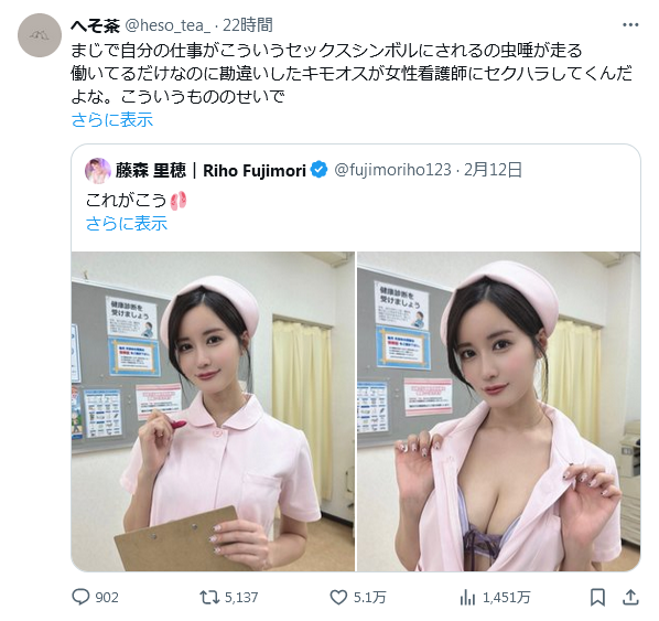こんな事に目くじら立てるってむしろ君たち自身が看護師下げに繋がってるまである
