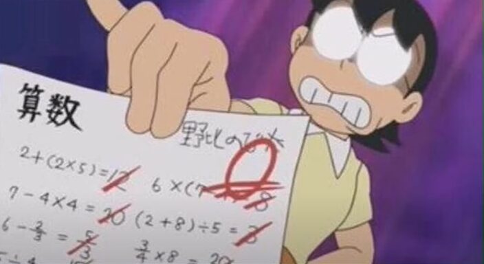 これ掛け算とかカッコ内優先せんと左から順に計算すると一問目20で二問目12でのび太の答えと逆になるんやな