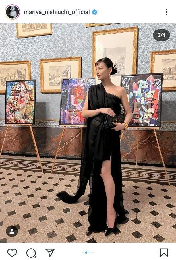西内はインスタグラムで「無事に日本に戻ってきました!今回ローマでは沢山貴重な経験をさせてもらい赤松さんとの出逢いもとても大きな刺激となりました」と報告。左足部分に大きなスリットが入り、肩とデコルテを露出した黒のロングドレス姿の写真を投稿した。