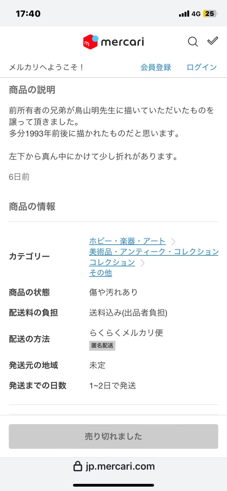 いくら鳥山直筆でもそのキャラクターに大して似てなかったら個人的にあまり価値がないなと思った