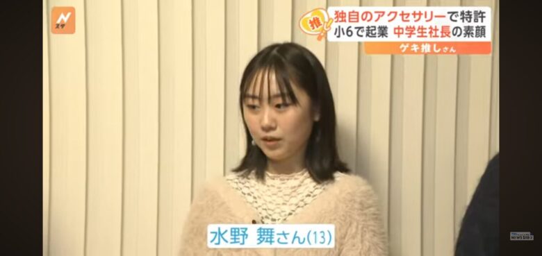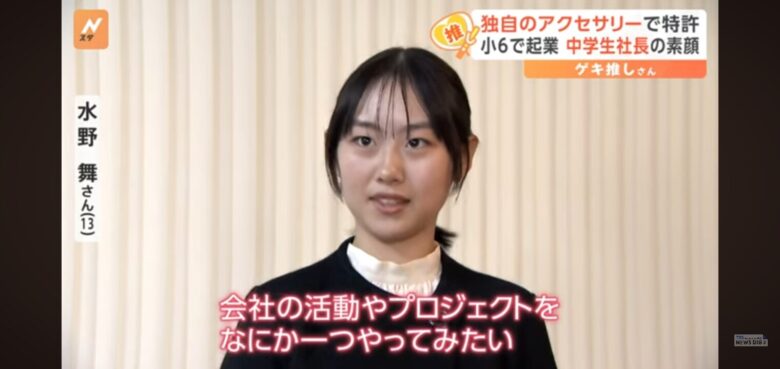 社長の水野舞さんは、小学5年生で自身が考えたマイヤリングの特許を取得し、小学6年生のときに株式会社マイヤリングスを設立しました。