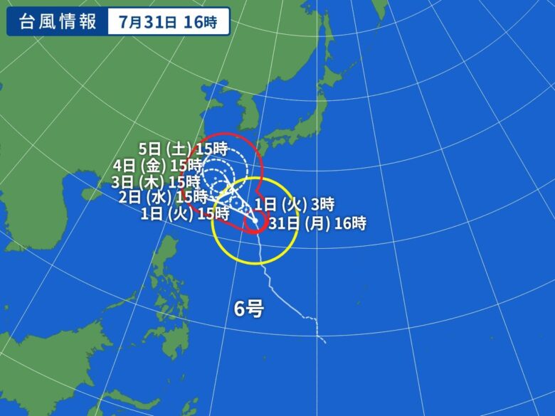 @NON_0634大型で非常に強い台風6号「右折するんか」「急カーブやん」8月4~5日に進路変更して沖縄から九州・本州に接近する可能性【台風情報 台風位置・進路シミュレーション】 #SmartNews mbs.jp/news/feature/k…