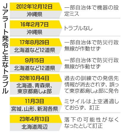 ![]() | 沖縄知事「住民の安全安心の確保に全力」 北朝鮮ミサイル発射 北朝鮮のミサイル発射を受け、沖縄県の各自治体には政府から全国瞬時警報システム(Jアラート)や緊急情報ネットワーク(エムネット)が発出され、住民にも… (出典:毎日新聞) |
