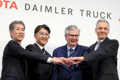 @shiopii123トヨタ自動車と独ダイムラートラックは30日、商用車分野で提携すると発表した。トヨタ傘下の日野自動車とダイムラー傘下の三菱ふそうトラック・バスを統合し、電動化や自動運転など「CASE」技術を共同開発する。 nikkei.com/article/DGXZQO…