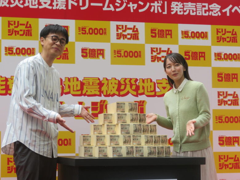 吉岡里帆(31)成田凌(30)が8日、東京・西銀座チャンスセンターで「能登半島地震被災地支援ドリームジャンボ」発売記念イベントに出席した。