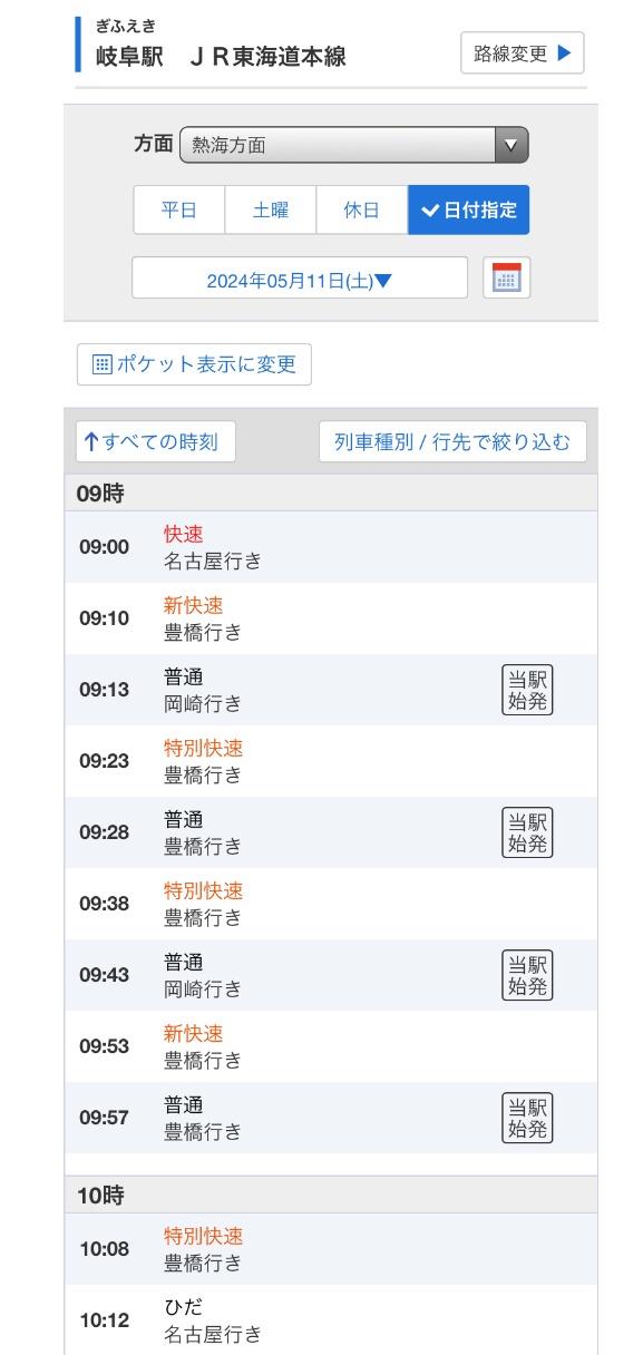 ・岐阜駅から名古屋駅まで18分(新快速・快速・普通が毎時2本ずつ、10分ごと来る)